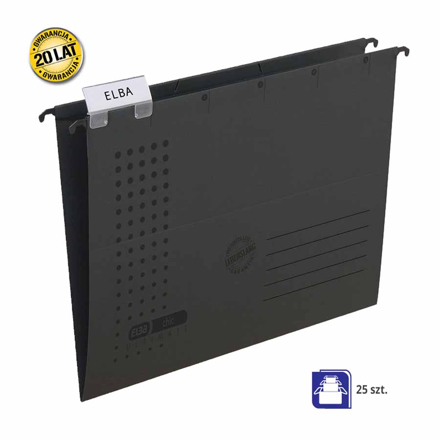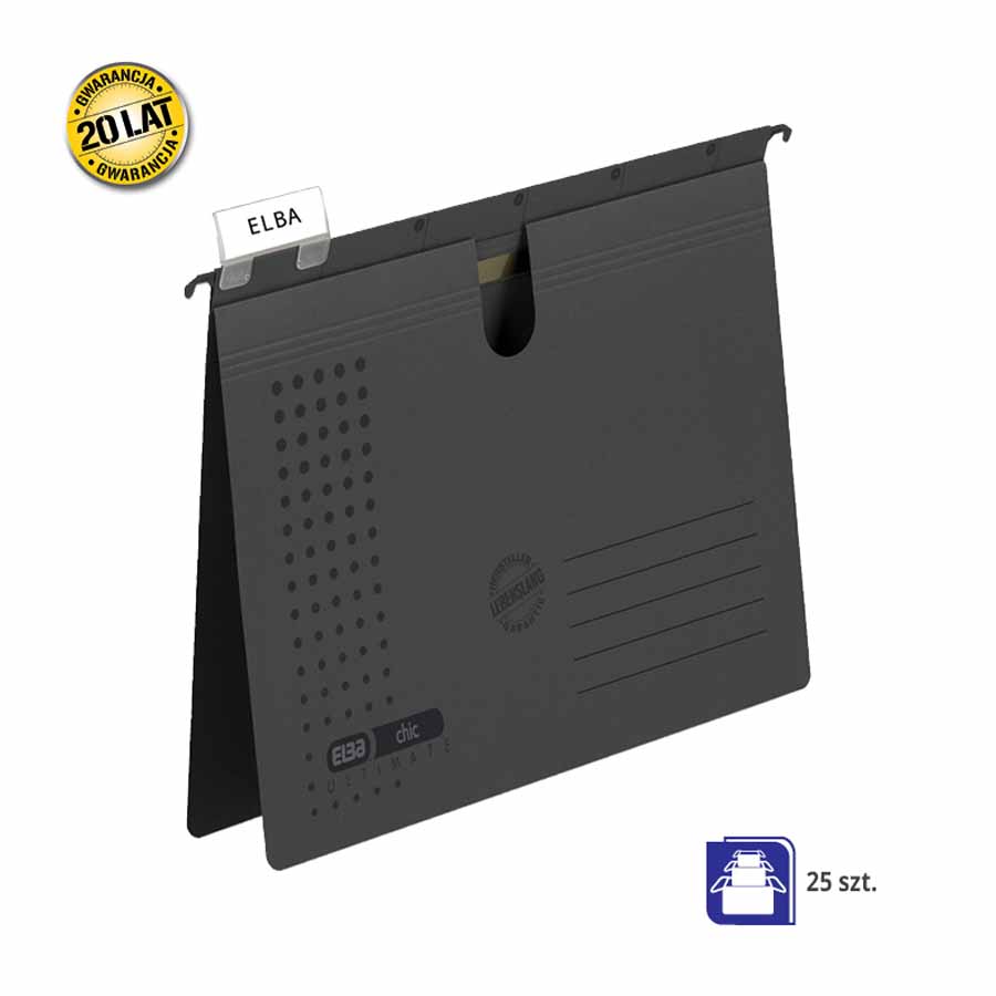 Wyposażona w metalowy uchwyt zawieszkowy, teczka gwarantuje solidność i wytrzymałość. Boczne ograniczniki z płótna skutecznie zabezpieczają dokumenty przed przypadkowym wysunięciem, a pojemność teczki umożliwia przechowywanie aż do 400 kartek formatu A4.