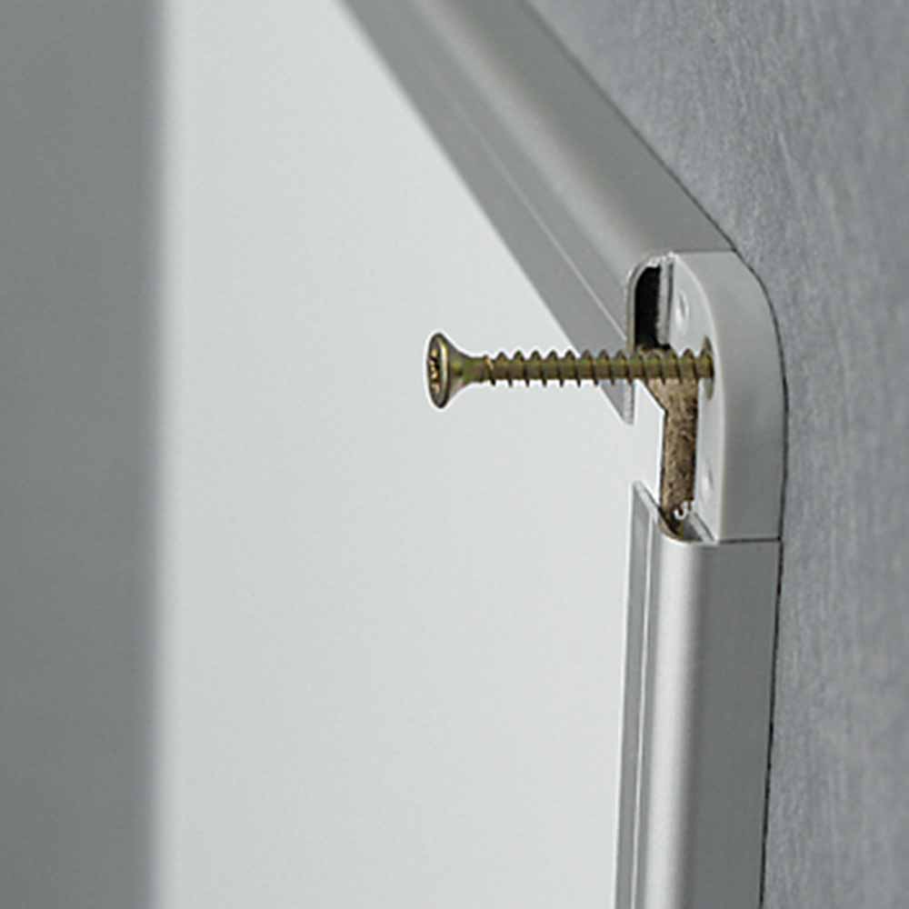 Tablica jest wyjątkowo łatwa w montażu, a możliwość zawieszenia zarówno w pionie, jak i w poziomie pozwala na pełne dopasowanie do dostępnej przestrzeni. Dzięki zestawowi montażowemu oraz dodatkom, takim jak półka na markery (30 cm), marker i 3 magnesy, tablica jest gotowa do użycia od razu po zamontowaniu.