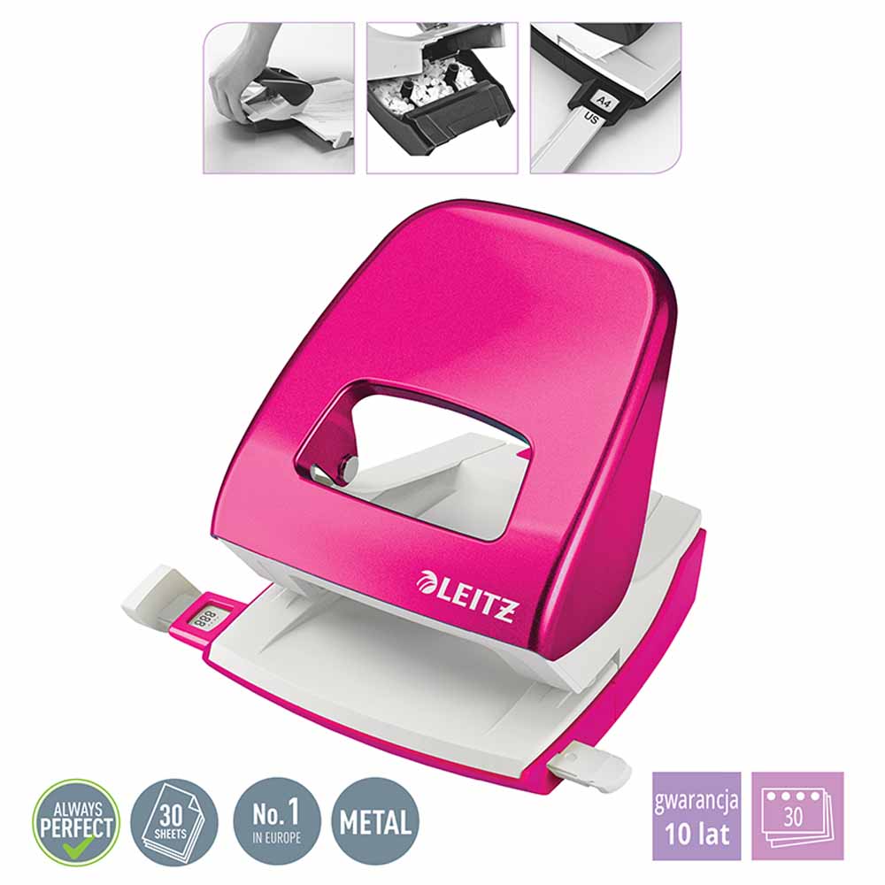 Zszywacz Leitz 5502 WOW NeXXT mieści do 100 zszywek 24/6 lub 140 zszywek 26/6, a dzięki zintegrowanemu rozszywaczowi i obrotowej stopce, zmiana zszywania z otwartego na zamknięte jest niezwykle prosta. Dodatkowo, ergonomiczna konstrukcja oraz poręczny kształt sprawiają, że zszywanie staje się szybkie i bezwysiłkowe.