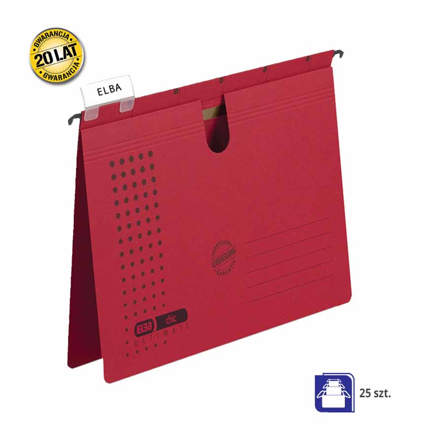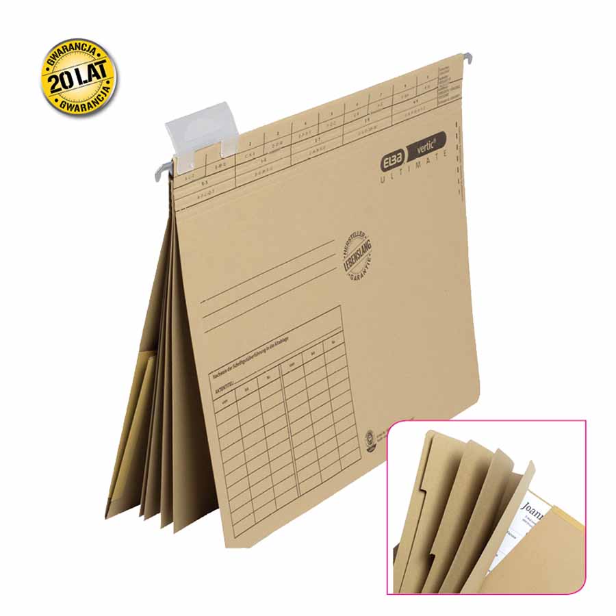 Teczka wyposażona jest w solidny metalowy uchwyt zawieszkowy, który zapewnia niezawodność w codziennym użytkowaniu. Jej konstrukcja umożliwia łatwe wieszanie teczki w szafkach czy szufladach biurowych, co pozwala na wygodne przechowywanie i szybki dostęp do dokumentów.