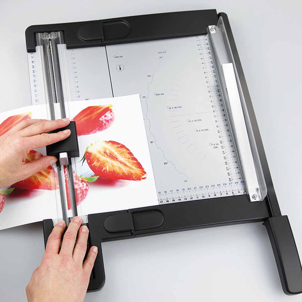 Gilotyna z trymerem Wallner GT 320 to innowacyjne urządzenie, które łączy w sobie funkcje dwóch niezbędnych narzędzi biurowych. Dzięki możliwości łączenia i rozłączania gilotyny i trymera, zyskujesz wszechstronność oraz wygodę użytkowania. Prosty sposób składania urządzenia pozwala na oszczędność miejsca podczas przechowywania, co czyni je idealnym rozwiązaniem dla biur i pracowni o ograniczonej przestrzeni.