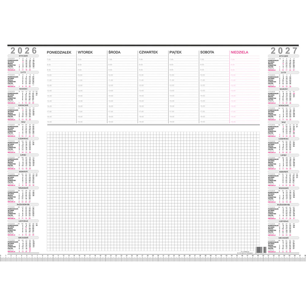 - układ: dzień na stronie (sobota i niedziela na jednej stronie)