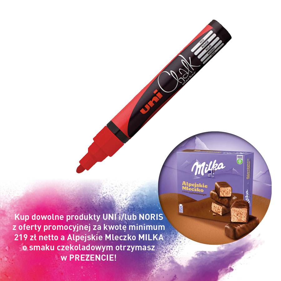 jm.: szt Kup dowolne produkty UNI i/lub NORIS z oferty promocyjnej za kwotę minimum 219 zł netto a Alpejskie Mleczko MILKA o smaku czekoladowym otrzymasz w PREZENCIE!