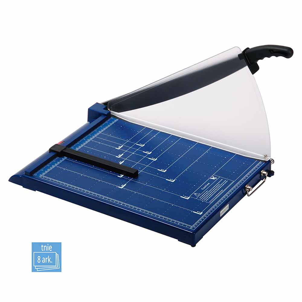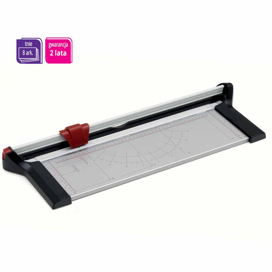 - przesuwny ogranicznik formatu ułatwia przygotowanie dokumentu do cięcia