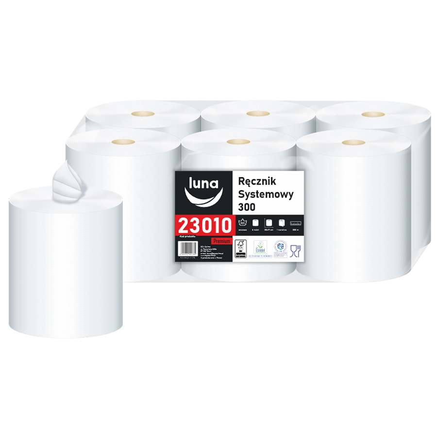 Produkt dostępny jest w opakowaniu zawierającym 6 rolek w kolorze białym. Takie zestawienie pozwala na wygodne przechowywanie i sprawne zaopatrzenie firm, restauracji czy innych miejsc użyteczności publicznej, gdzie ważna jest wysoka jakość i ekonomia użytkowania.