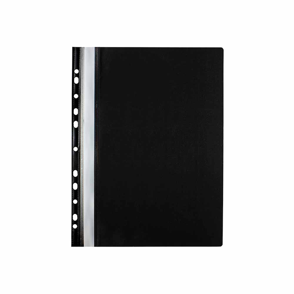 Boczna perforacja pozwala na łatwe wpięcie skoroszytu do segregatora z dowolnym mechanizmem, co zwiększa możliwości organizacji i archiwizacji dokumentów. Wewnętrzna blaszka i wąs o długości 14,5 cm umożliwiają bezpieczne przechowywanie dokumentów o grubości do 20 mm.
