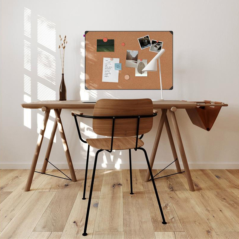 Wybierz tablicę korkową MemoBe Idea w ramie aluminiowej EDGE, aby połączyć funkcjonalność, trwałość i nowoczesny styl. To idealne narzędzie do organizacji i dekoracji przestrzeni, stworzone z myślą o ekologii i Twojej wygodzie.
