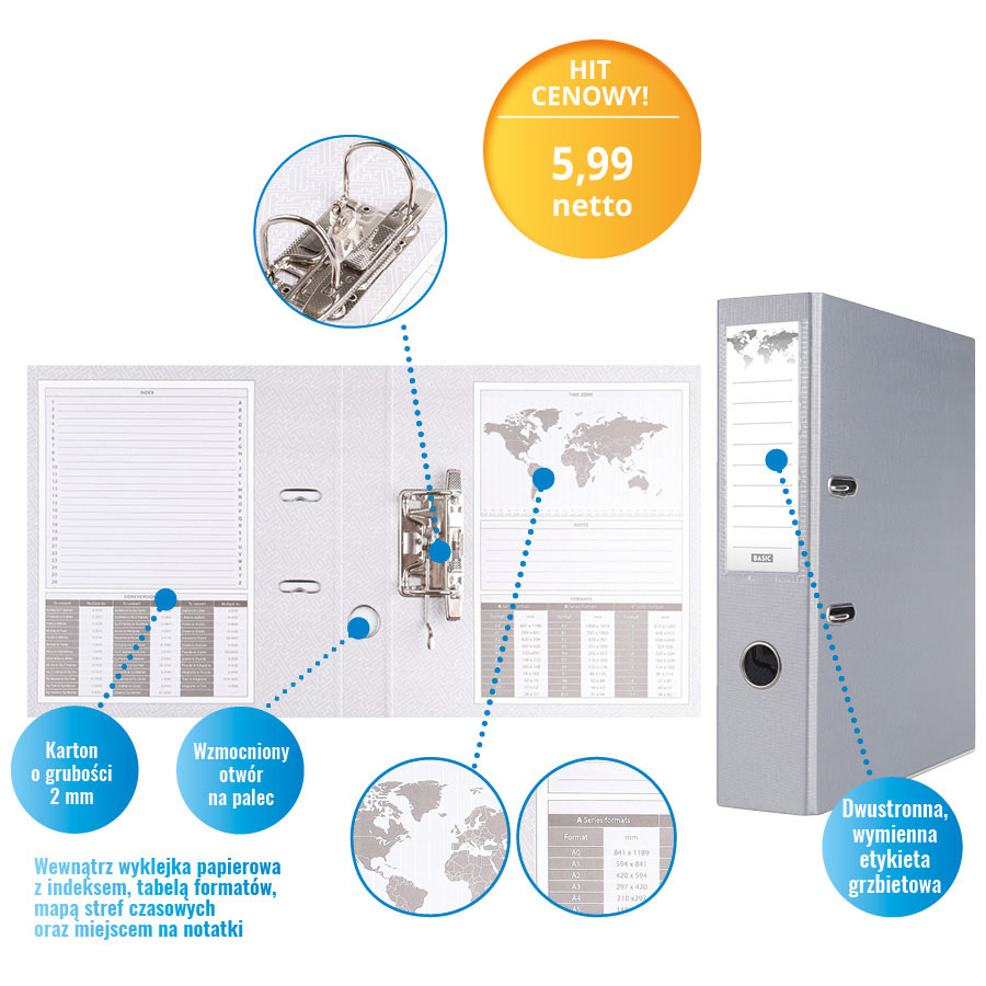 mieści różne kombinacje pudeł i segregatorów (max. 8 segr.A4/70 mm lub 6 pudeł 100 mm)