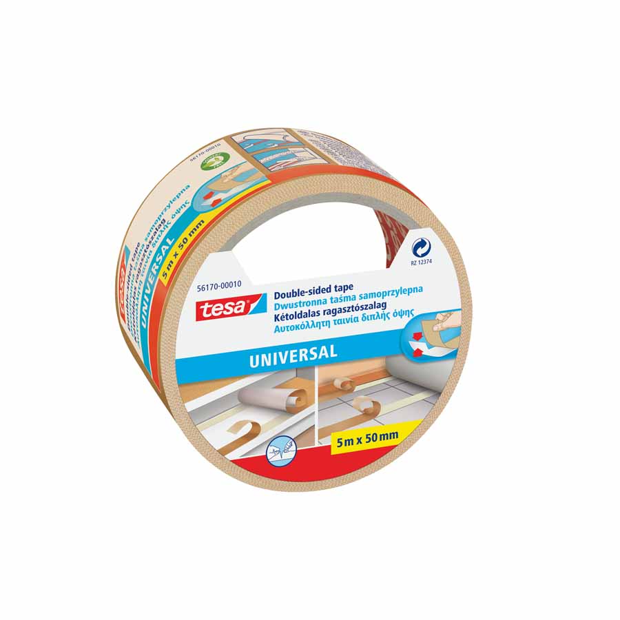 przezroczysta dwustronna taśma samoprzylepna składa się z papierowej bibułki oraz syntetycznego kleju kauczukowego (hot-melt) jednostronnie zabezpieczona białym papierowym paskiem do mocowania listew, dywanów, profili, itp. szerokość: 50mm długość: 10m grubość: 90μm średnica rolki: 3'' (ok. 76mm) kolor transparentna