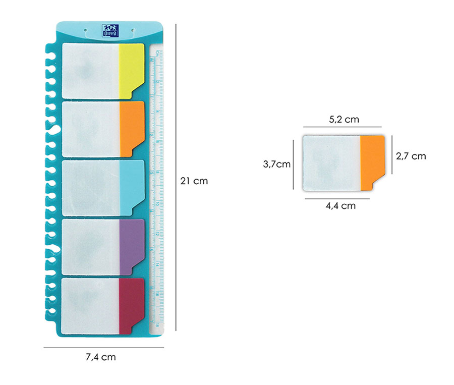 - transparentne, samoprzylepne przekładki indeksujące PP z kolorowymi brzegami (5 kolorów po 25 sztuk)