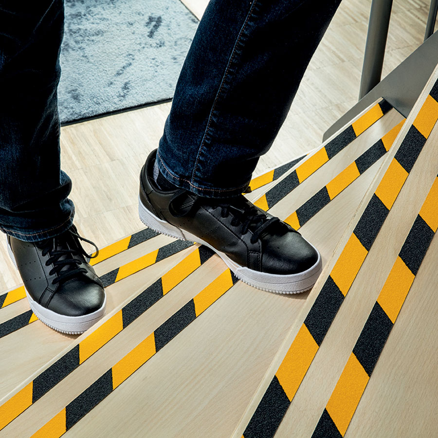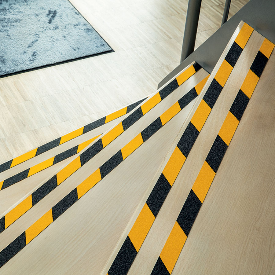- standardowa antypoślizgowa taśma samoprzylepna do zwiększenia bezpieczeństwa traktów komunikacyjnych i powierzchni ruchu pieszego