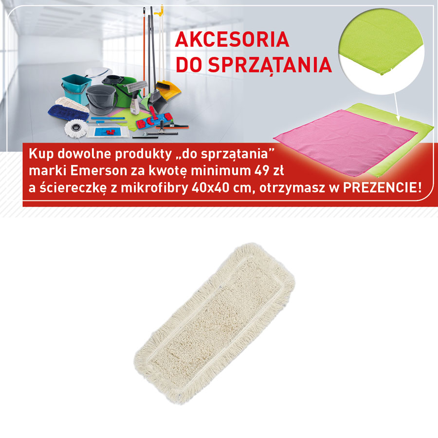 jm.: szt Kup dowolne produkty do sprzątania marki Emerson za kwotę minimum 49 zł a ściereczkę z mikrofibry 40x40 cm, otrzymasz w PREZENCIE!