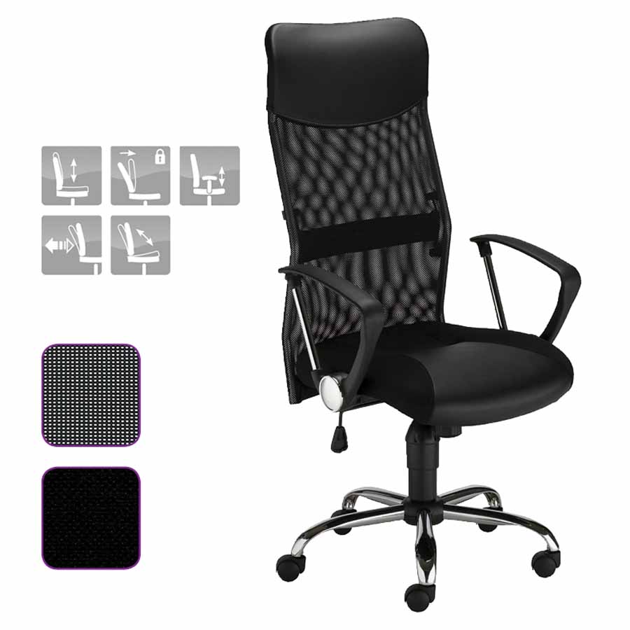 ergonomiczny, obrotowy fotel biurowy z wysokiej jakości siatką na siedzisku, oparciu i zagłówku siedzisko bez wypełnienia pianką zapewnia przepływ powietrza i podnosi komfort podczas wielogodzinnej pracy mechanizm synchroniczny z systemem antywstrząsowym, umożliwia regulację wysokości siedziska i kąta nachylenia oparcia blokada w 5 pozycjach zagłówek z regulacją wysokości i kąta nachylenia podłokietniki 3D z możliwością regulacji wysokości, kąta nachylenia, przesunięcia przód/tył i obrotu prawo/lewo zapewniająca stabilność pięcioramienna, nylonowa podstawa podnośnik gazowy (siłownik) klasy 4: 100 mm kółka nylonowe, twarde, do miękkich powierzchni - średnica 50 mm materiał: 100% poliester, mesh wysokość krzesła: 99 – 108,5 cm regulacja wysokości siedziska w zakresie: 46 - 56 cm szerokość oparcia (w najszerszym punkcie): 51 cm wysokość robocza oparcia: 56 cm szerokość siedziska (w najszerszym punkcie): 51 cm głębokość siedziska: 47 cm średnica podstawy: 69 cm maksymalne obciążenie: 136 kg kolor: czarny