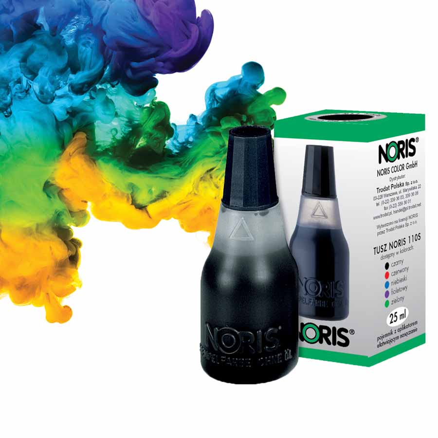 Tusz Noris 110S jest dostępny w buteleczce o pojemności 25 ml, wyposażonej w końcówkę ułatwiającą nasączenie poduszek. Dzięki temu napełnianie poduszek tuszem jest szybkie i bezproblemowe. Nakrętka w kolorze tuszu pozwala na łatwą identyfikację i wygodne przechowywanie.