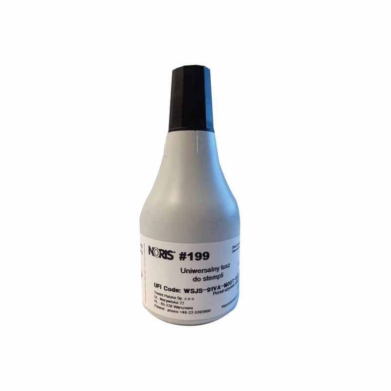 Tusz Noris 110S jest dostępny w buteleczce o pojemności 25 ml, wyposażonej w końcówkę ułatwiającą nasączenie poduszek. Dzięki temu napełnianie poduszek tuszem jest szybkie i bezproblemowe. Nakrętka w kolorze tuszu pozwala na łatwą identyfikację i wygodne przechowywanie.