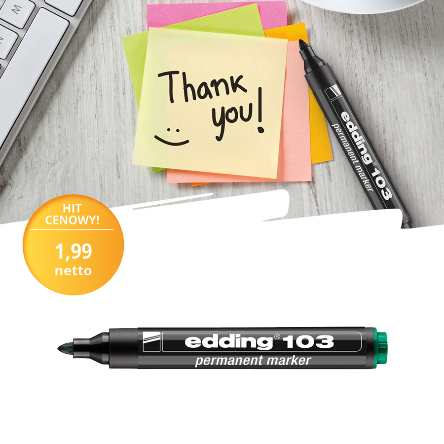 Marker edding 103 posiada wodoodporny tusz, który nie rozmazuje się nawet na wilgotnych powierzchniach. Dodatkowo tusz jest bezwonny i nie zawiera szkodliwych związków takich jak toluen czy ksylen, co zwiększa komfort pracy i bezpieczeństwo użytkowania.