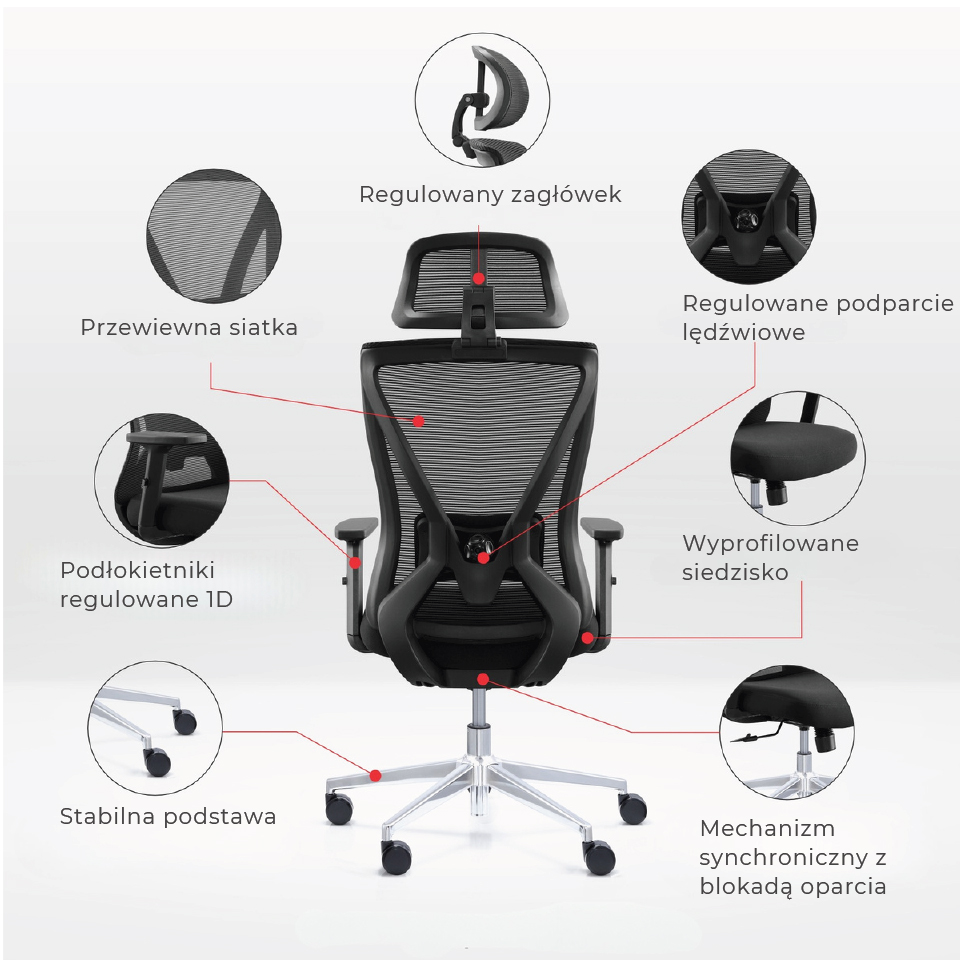 - ergonomiczny regulowany zagłówek 3D
