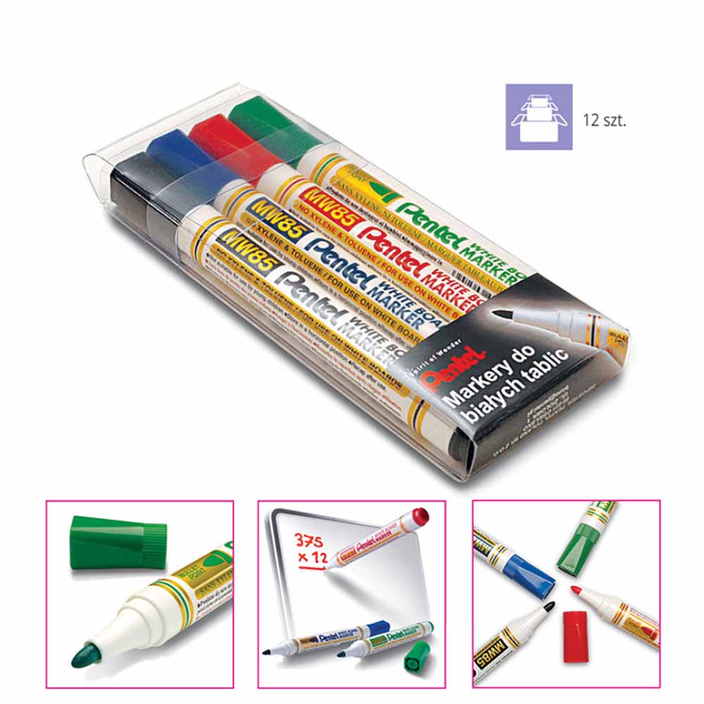Wyraźne kolory tuszu i łatwość ścierania sprawiają, że marker Pentel MWL5S Maxiflo jest idealnym narzędziem do codziennego użytku na tablicach suchościeralnych.